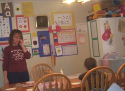 The kids have been doing Preschool since Sept. 2008. At this time we have all 3 yr old children in the daycare so they are doing a Pre- Preschool. Next year they will be doing preschool again getting more into what they will need to know for school.